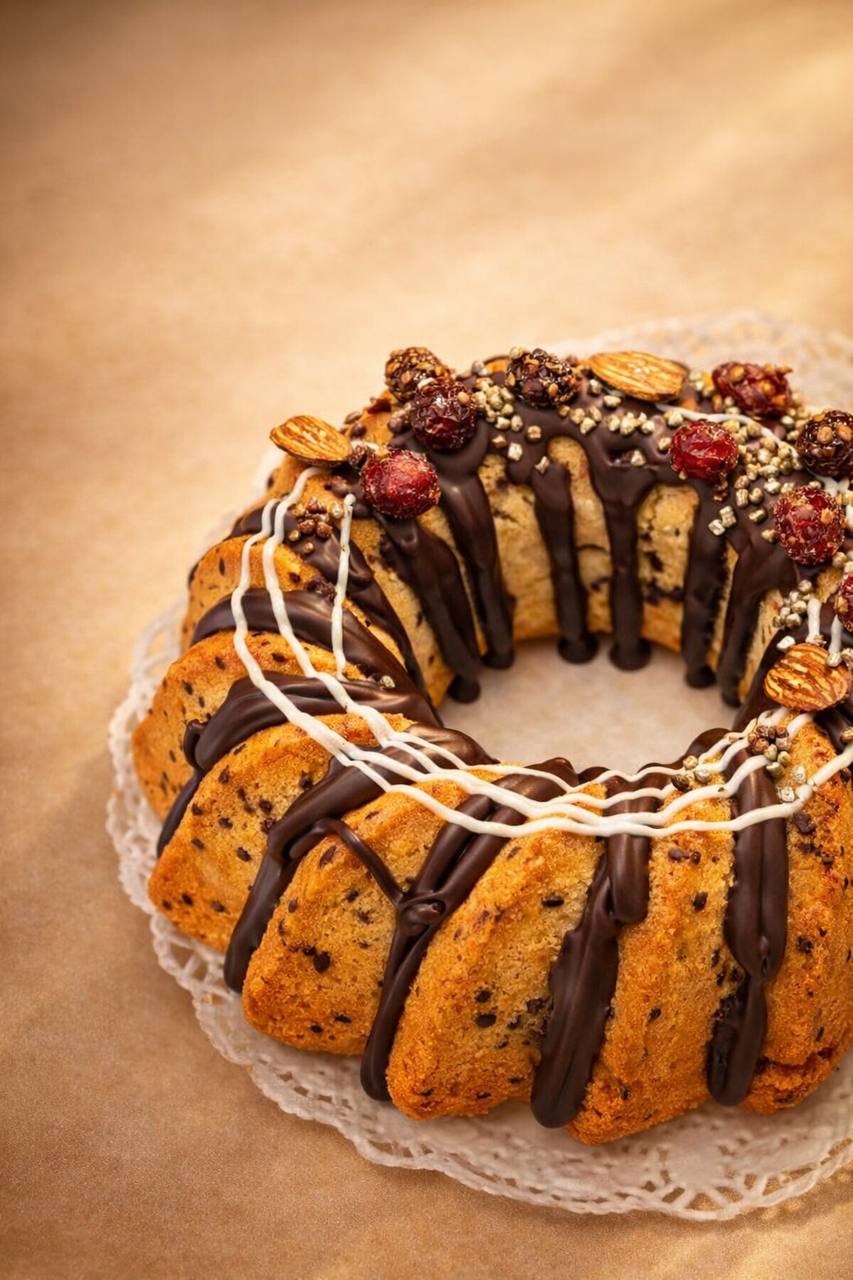 Мука пшеничная высшего сорта, сахар, яйца куриные пищевые, масло сливочное, молоко цельное, шоколадная глазурь обыкновенная (дробсы) А150, шоколад «Белый», шоколад «Молочный», клюква вяленая, миндаль, разрыхлитель теста Линденер.
