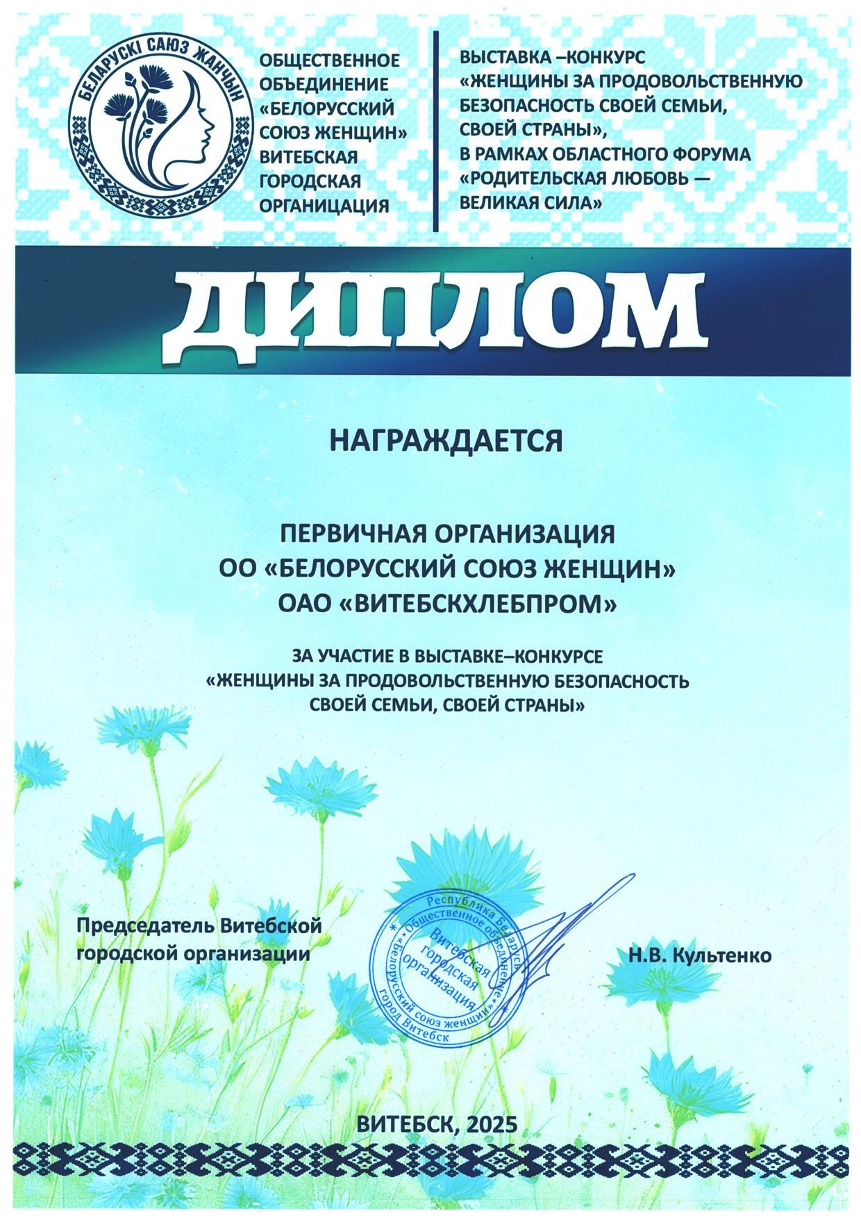 В преддверии Дня матери, первичная организация ОО «Белорусский союз женщин» ОАО «Витебскхлебпром» приняла участие в конкурсе по изготовлению куклы – символа Витебской областной организации ОО «Белорусский союз женщин» «Женская сущность».