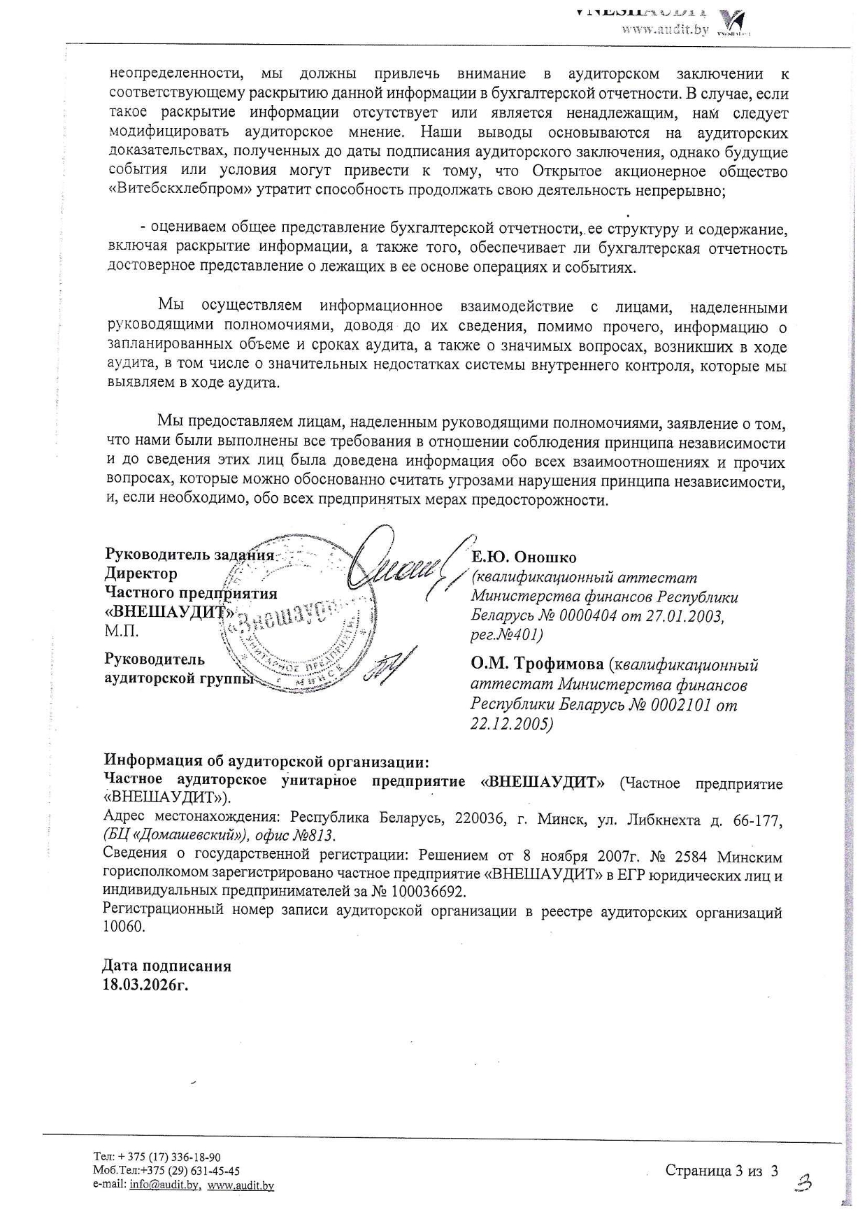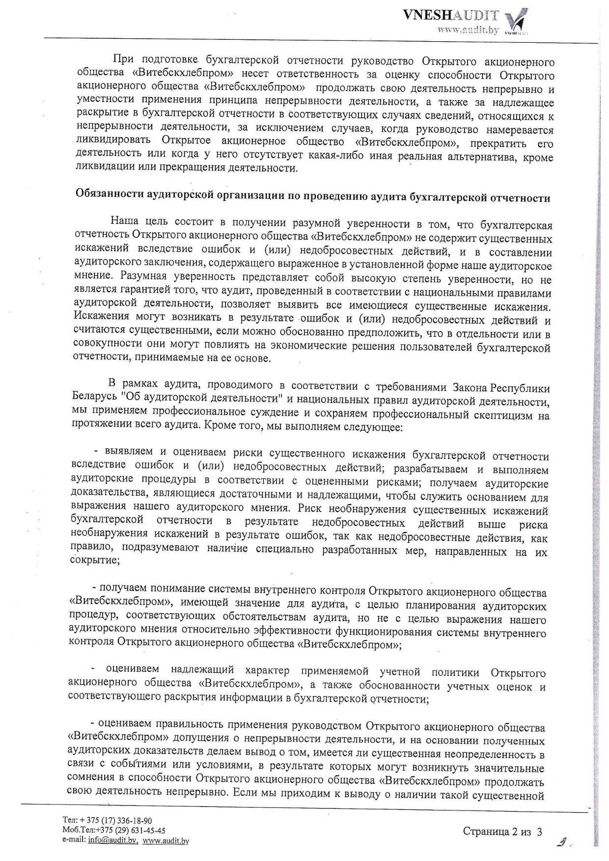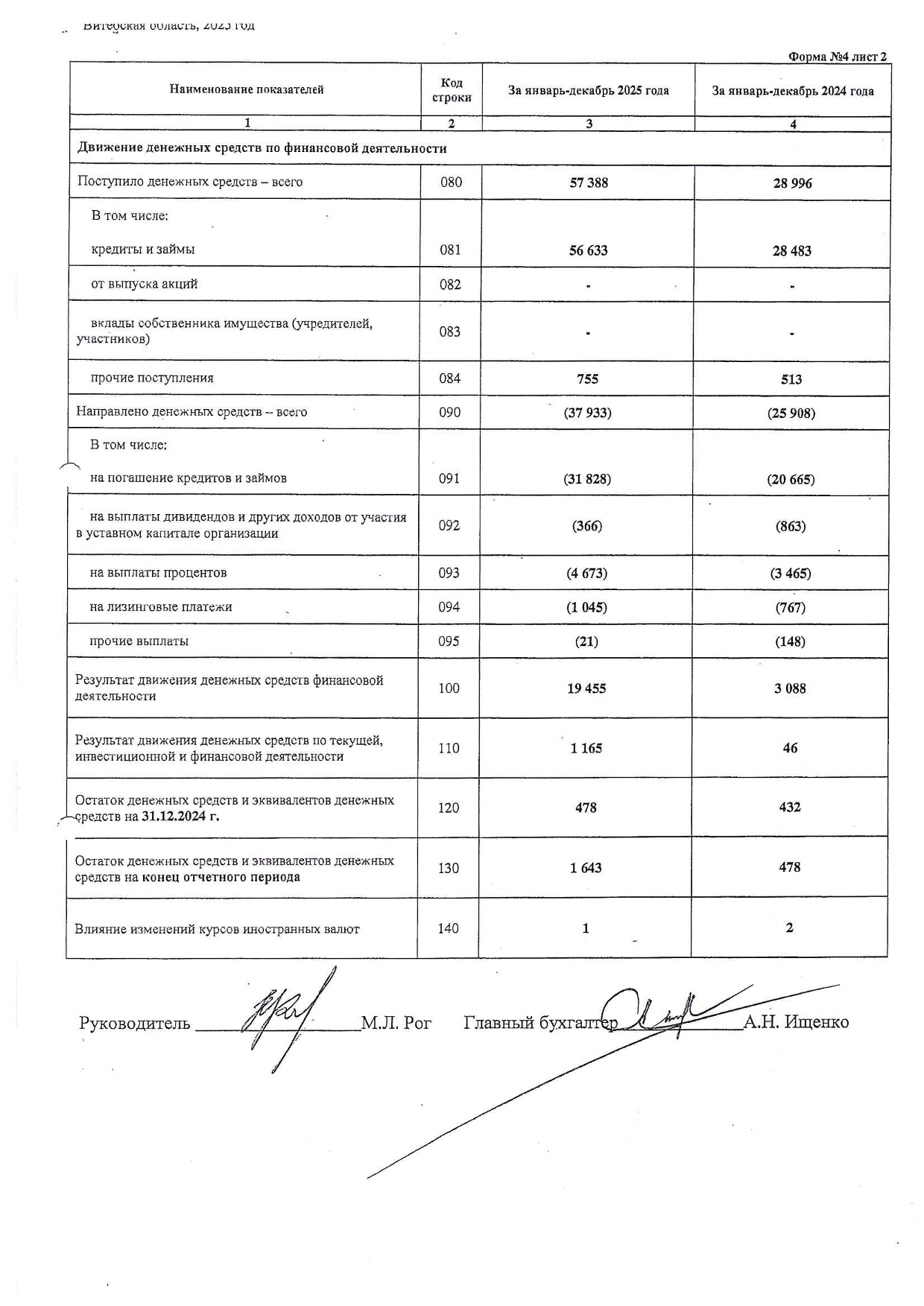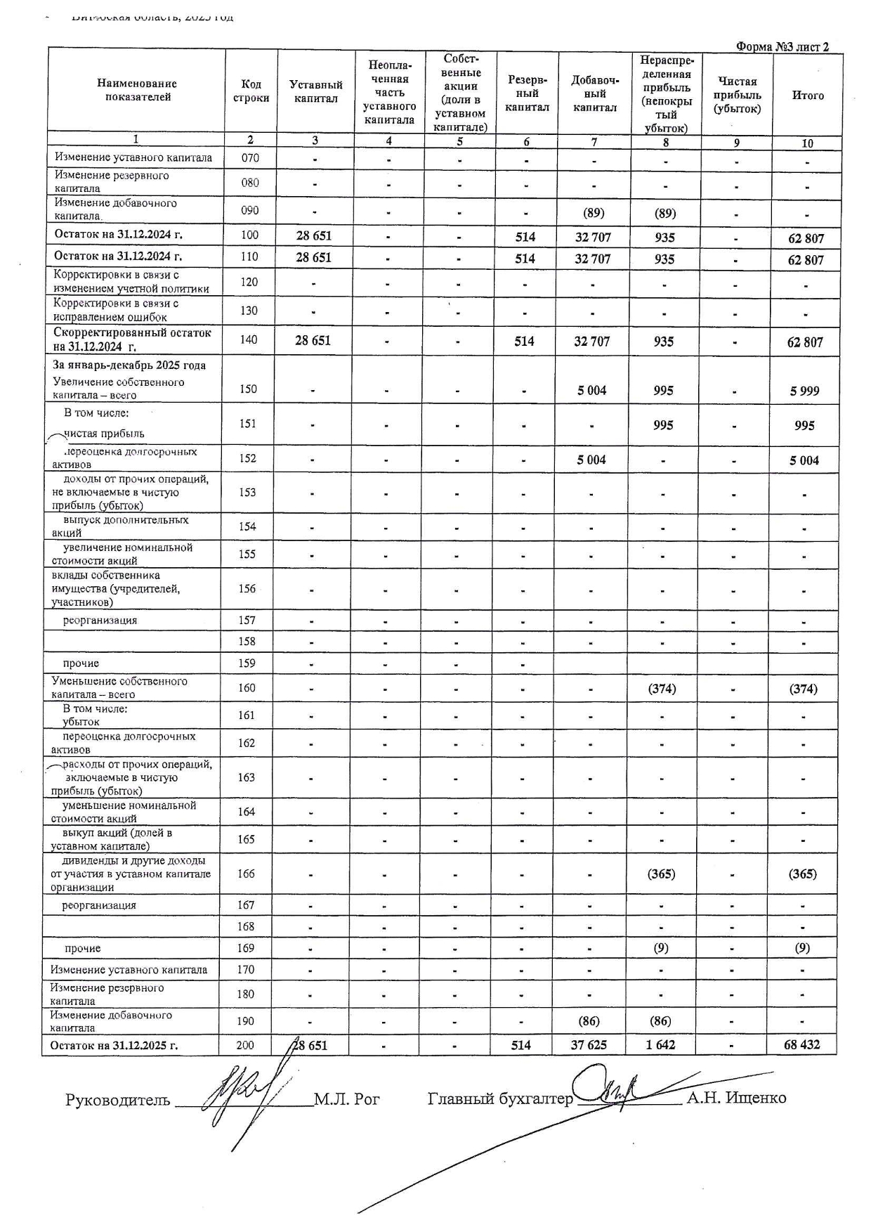 Примечания к бухгалтерской отчетности ОАО "Витебскхлебпром" за 2025г.